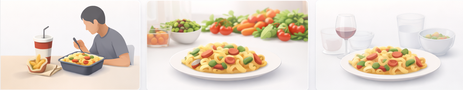Let’s consider three ESM / EMA participants who report the same meal: “pasta with meat and vegetables.”🥗